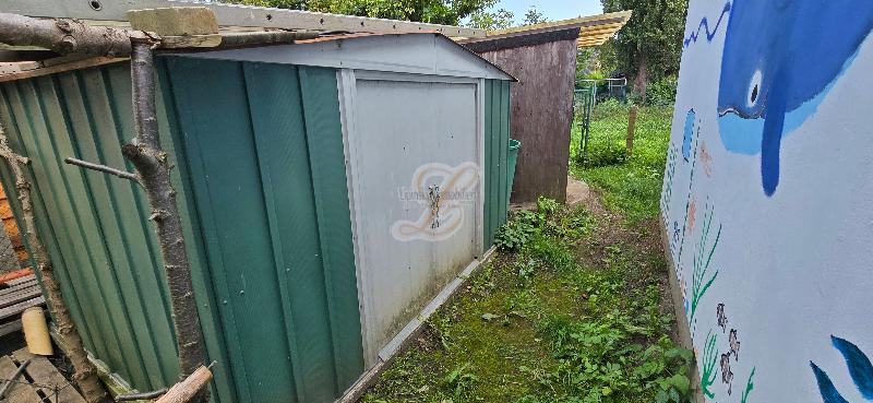 Auf dem eher quadratisch geschnittenen Grundstück, dass nur über einen Erbbaurechtsvertrag übernommen werden kann, befindet sich das in Massivbauweise errichtete Haus. Erschlossen ist das Grundstück mit Strom, Brunnenwasser (eine Umwandlungsanlage in Trinkwasser ist vorhanden) und einer ca. 4 m³ fassenden Abwassergrube.